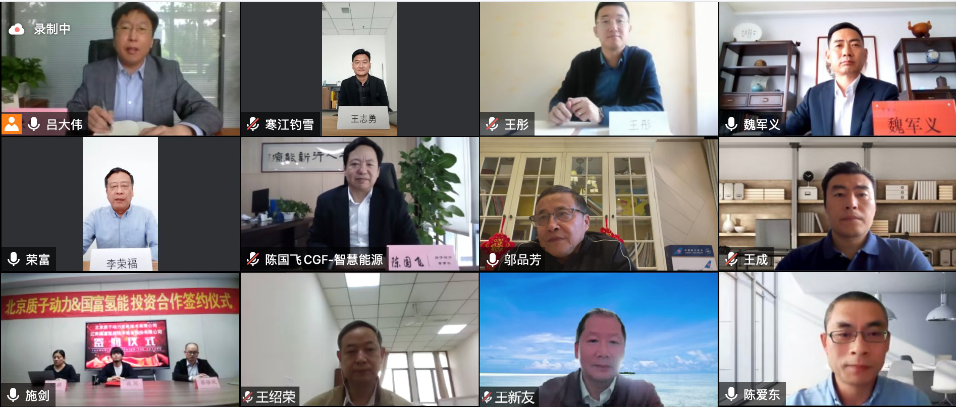 2022年5月9日上午,江蘇國富氫能技術裝備股份有限公司與北京質子動力發電技術有限公司舉行云簽約儀式,共同成立合資公司。國富氫能董事長鄔品芳、質子動力董事長陳國飛出席和見證簽約,雙方企業聯合創始人、高管和核心團隊等共計二十余人分別在北京、上海、山東青島、廣東佛山、寧夏銀川、江蘇徐州和張家港等地參加本次線上活動。